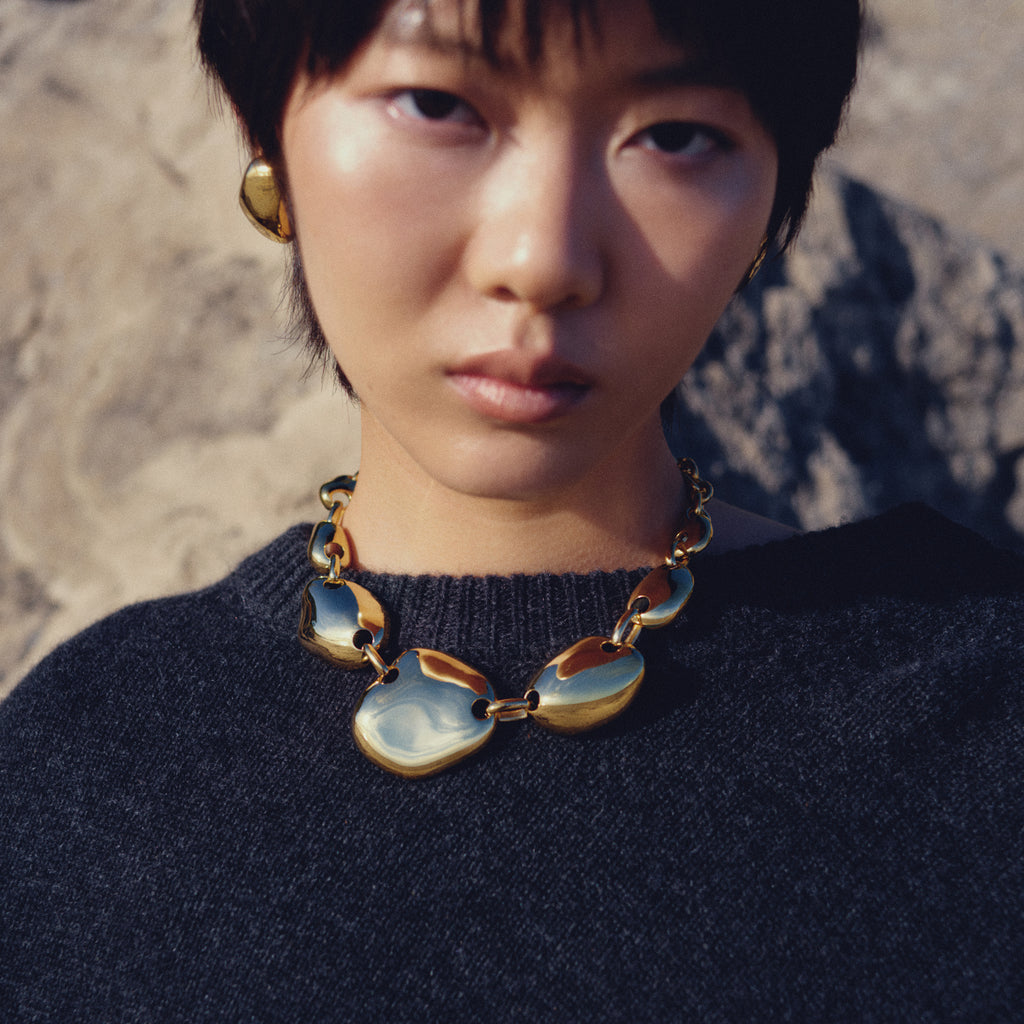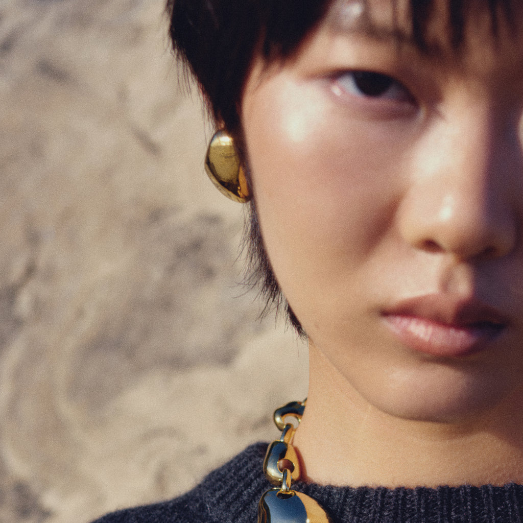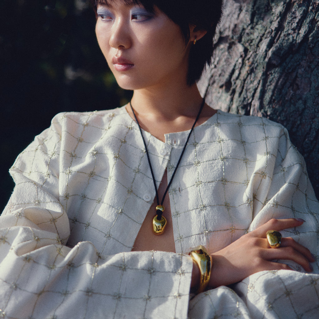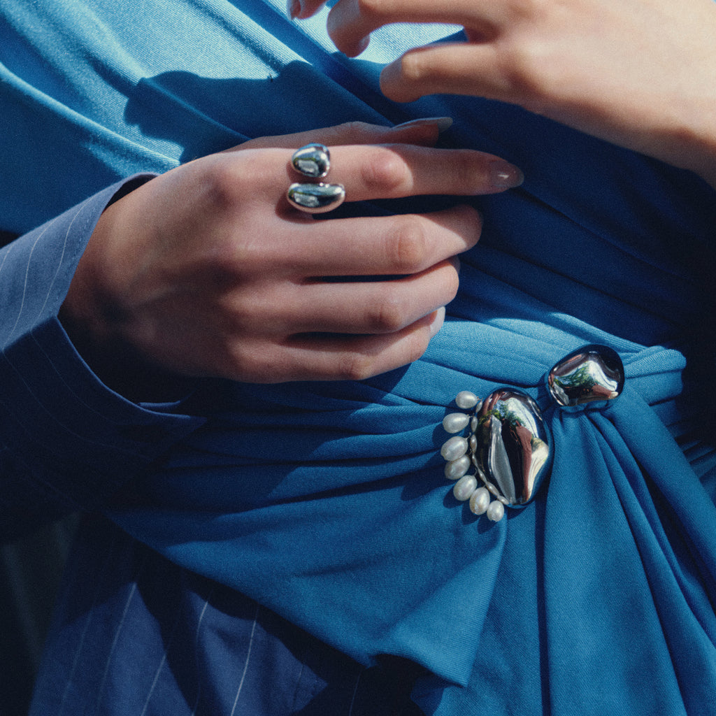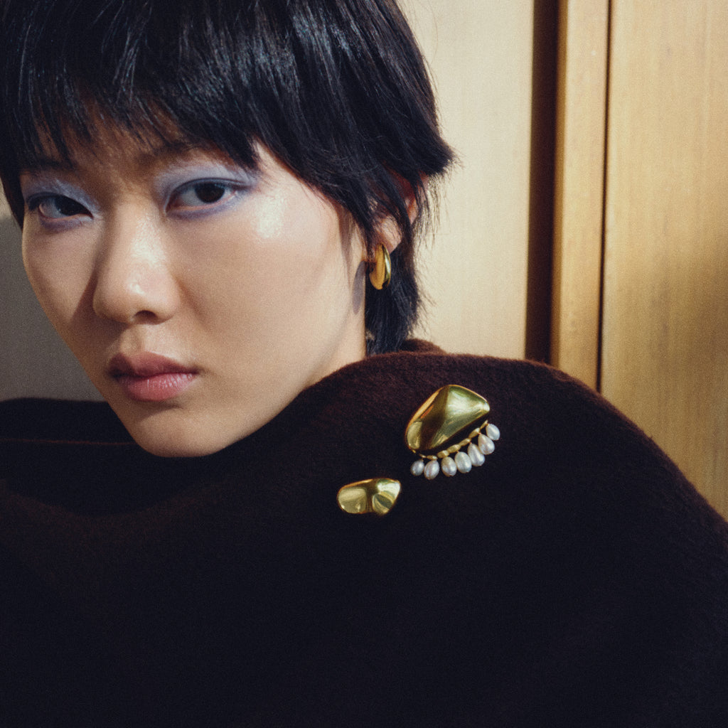 Meet the Effie and Nisi Pearl Brooches. Cast from hand-selected pebbles found on Corrine's grandmother's village beach in Greece, their organic forms bring sculptural shine, texture, and personality to any blazer, scarf, or lapel.