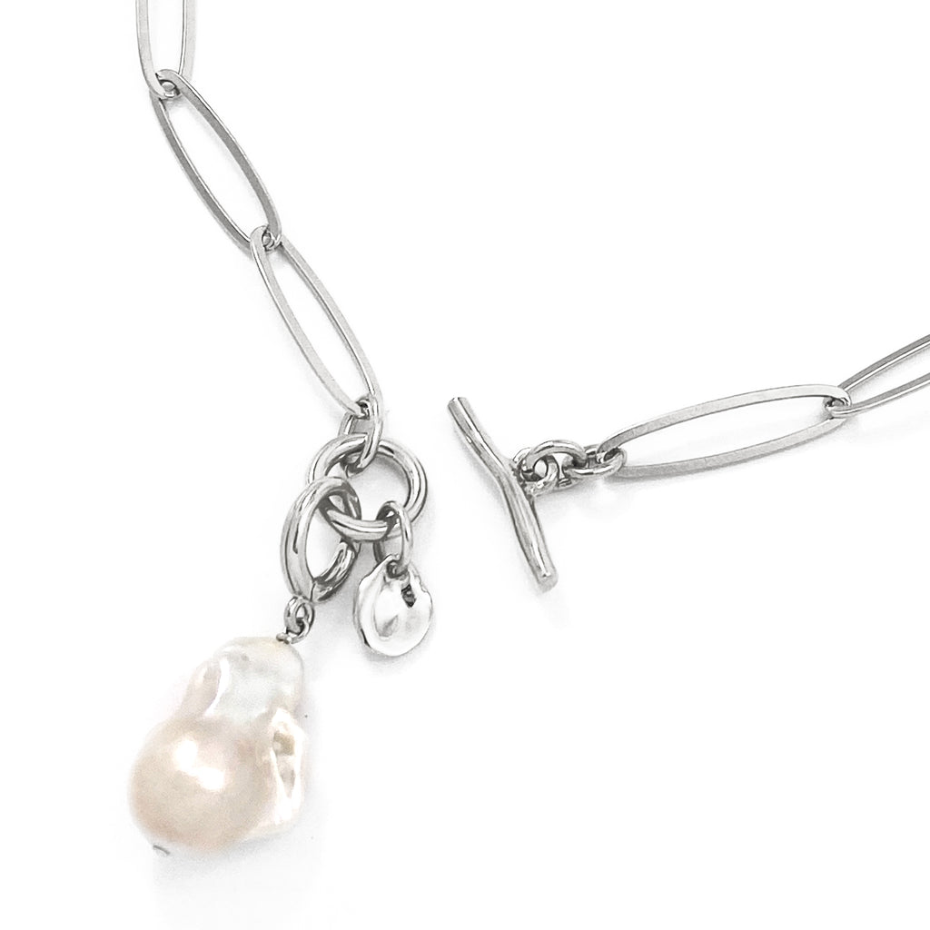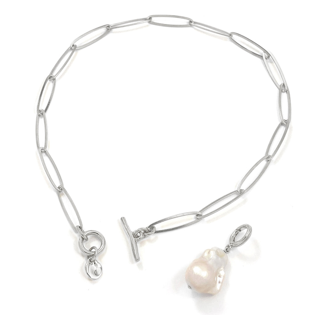 A new uplifting classic, this light-catching staple chain is perfect for daily wear. Featuring a baroque flameball pearl (no two pearls are ever exactly alike) with a removable clip, you'll have the versatility to wear as a cool-girl statement, or remove for a streamlined, solo chain. We love the toggle & pearl detail front and centre, but you can also unclip the pendant and shift it 'backwards' for a chain-first look.