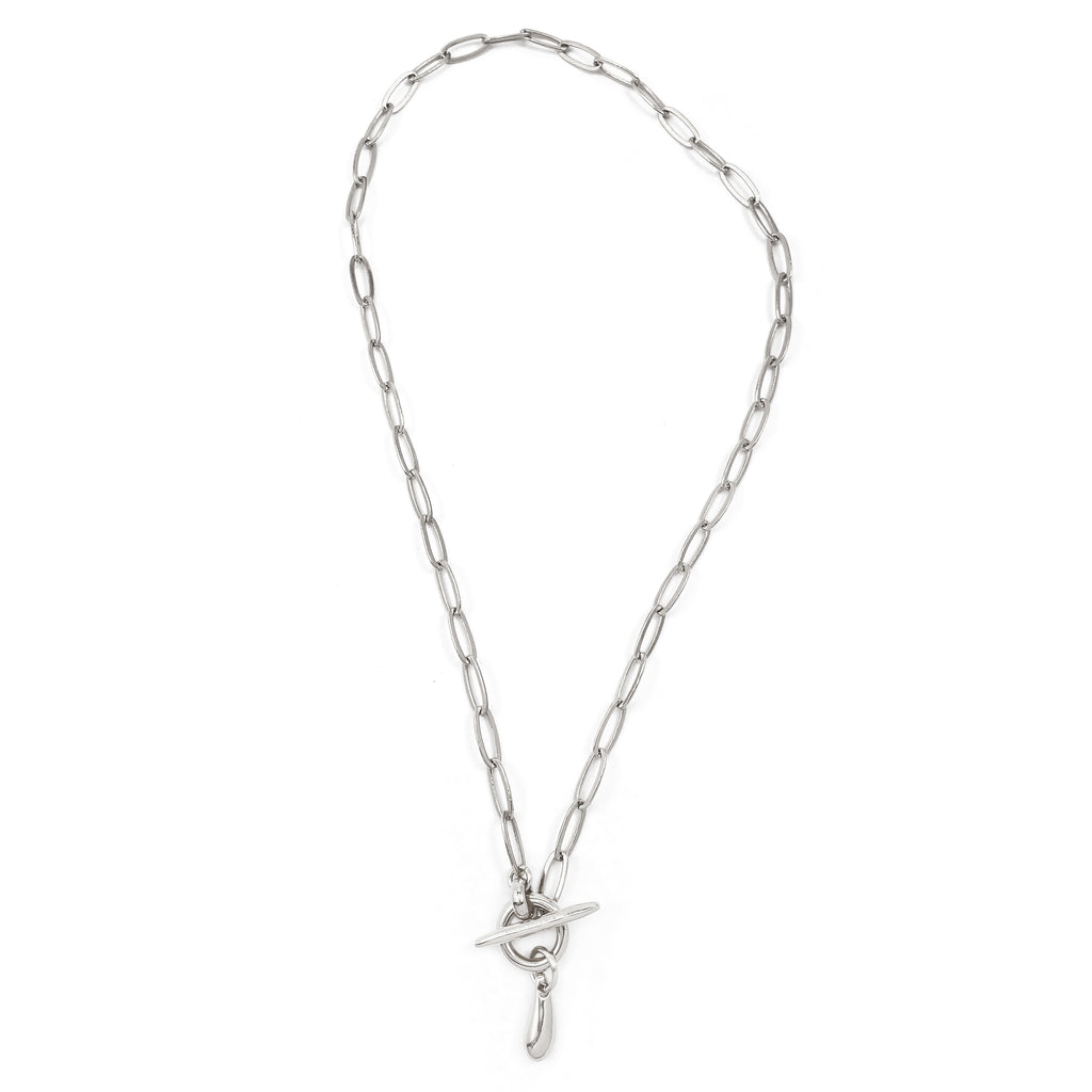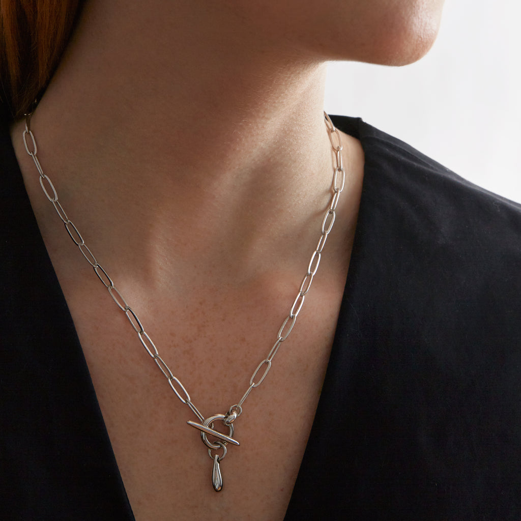 Streamlined, dimensional and sleek, your essential lightweight chain to throw on solo or layer as you wish. The toggle can be used to pull through to create a lariat silhouette. Wear the charm detail to the front or the back.