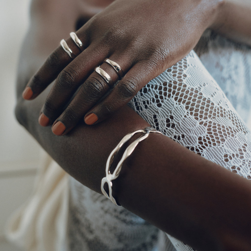 Mirror-polished, sculptural links wrap seamlessly around the wrist, creating a fluid silhouette. Handcrafted from a trio of links from our custom chain for maximum shine and effortless wear. Bold enough to stand alone, sleek enough to stack. Gently adjustable.