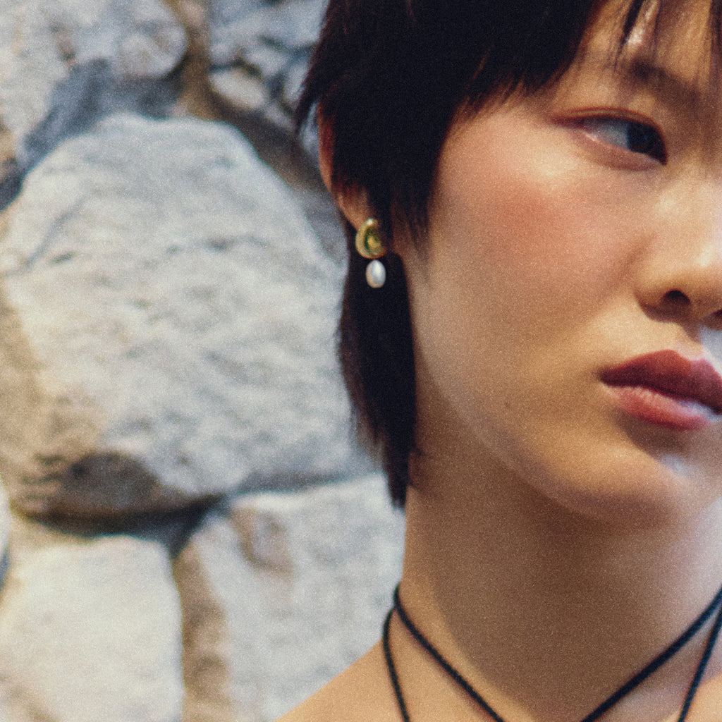A delicate pop of pearl elevates the classic Tasia Studs. Hand-cast from a pebble collected in Greece and paired with a luminous freshwater pearl, these earrings are sculptural, subtle, and effortlessly wearable.