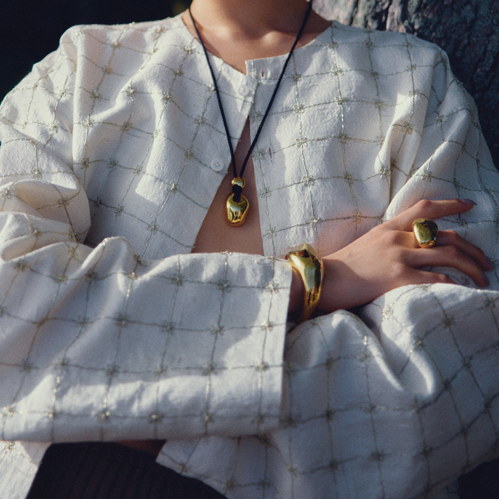 All BIKO pieces are plated in 14k gold or rhodium, over brass. They do not tarnish or cause discolouration on the skin. All earring posts are surgical stainless steel, and hypo-allergenic. Wear your BIKO jewels often; love them always.