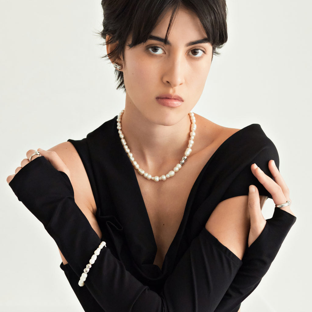 The name Levi means "joined in harmony' - fitting for this bright strand of twin pearls, which are created when two separate freshwater pearls fuse together during formation. This unity speaks to us and promotes a sense of connection, with others and within ourselves. Complete with a feature twin pearl cast in metal and plated in rhodium, as well as our signature toggle and charm.