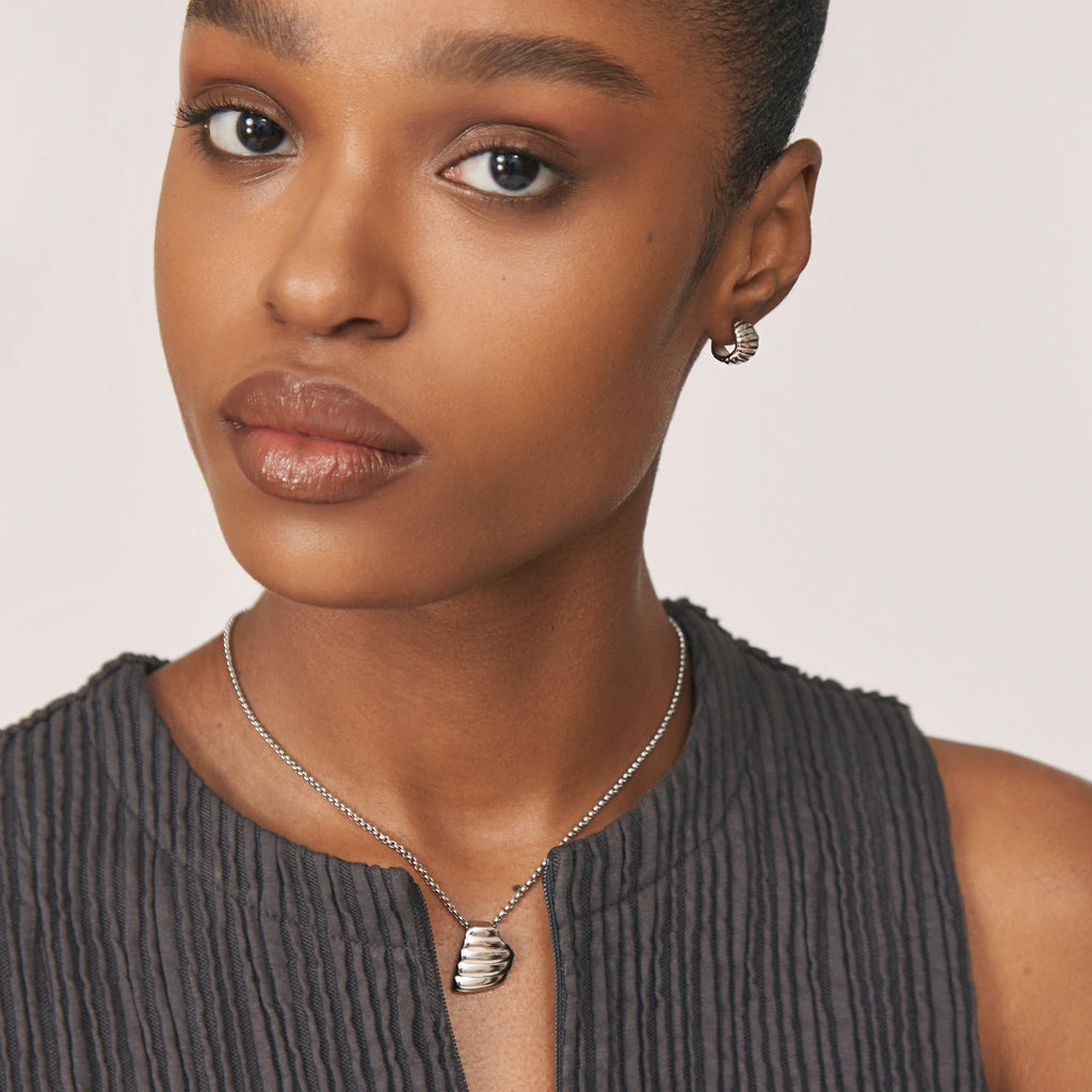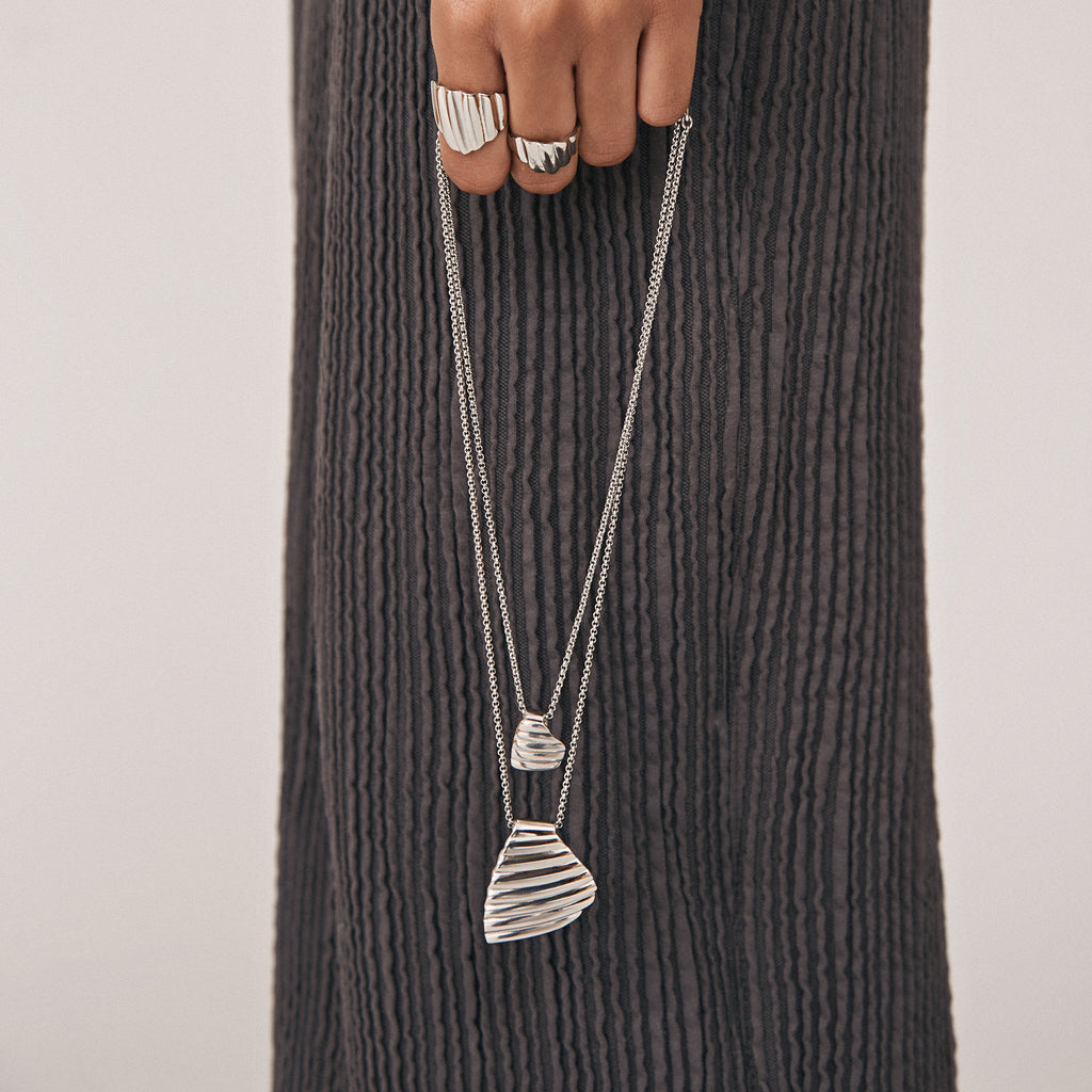 An easy everyday layering classic, this organic, modern pendant was thoughtfully handcrafted from a deconstructed shell, hand-cast and polished to a mirror finish. It's ripples playfully mimic the rays of the sun, bringing brightness and warmth to any outfit.