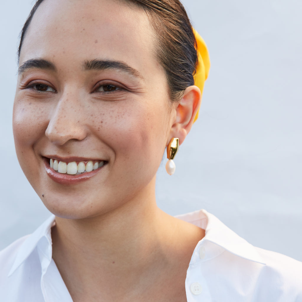 A sculptural statement stud bringing light and movement, the Amphora Pearl Studs take you on a journey to the Old World. Inspired by the curvaceous forms of ancient amphoras, these sleek beauties showcase a delicate drop of freshwater pearl bound to carry brightness with you wherever you go.
