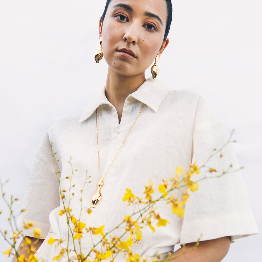 All BIKO pieces are plated in 14k gold or rhodium, over brass. They do not tarnish or cause discolouration on the skin. All earring posts are surgical stainless steel, and hypo-allergenic. Wear your BIKO jewels often; love them always.