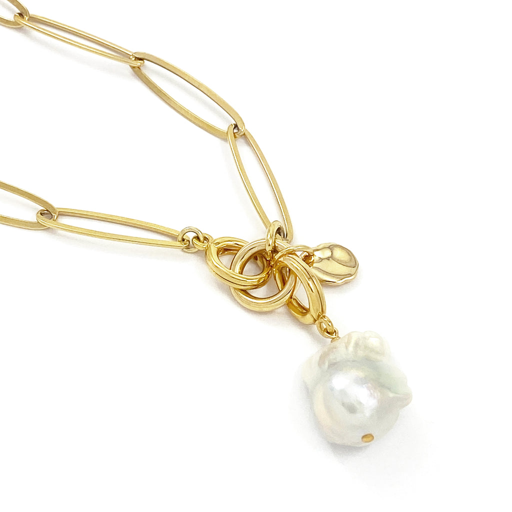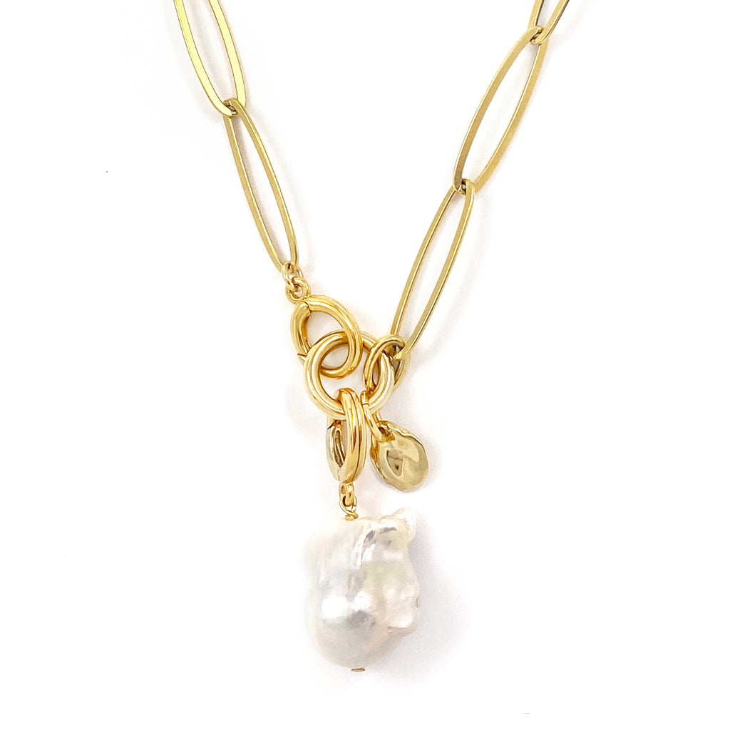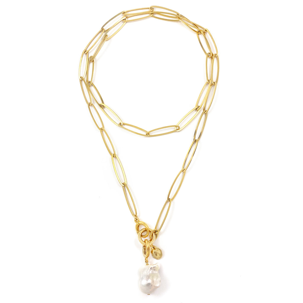 Dynamic and versatile, the Arden Convertible Lariat can be worn at least 8 ways, each with their own statement. Featuring a removable genuine flameball pearl, a sleek light-catching staple chain with an organic charm detail, and a custom "invisible" spring clasp. Sleek and confident, Arden is an easy, classic, go-to-always piece.