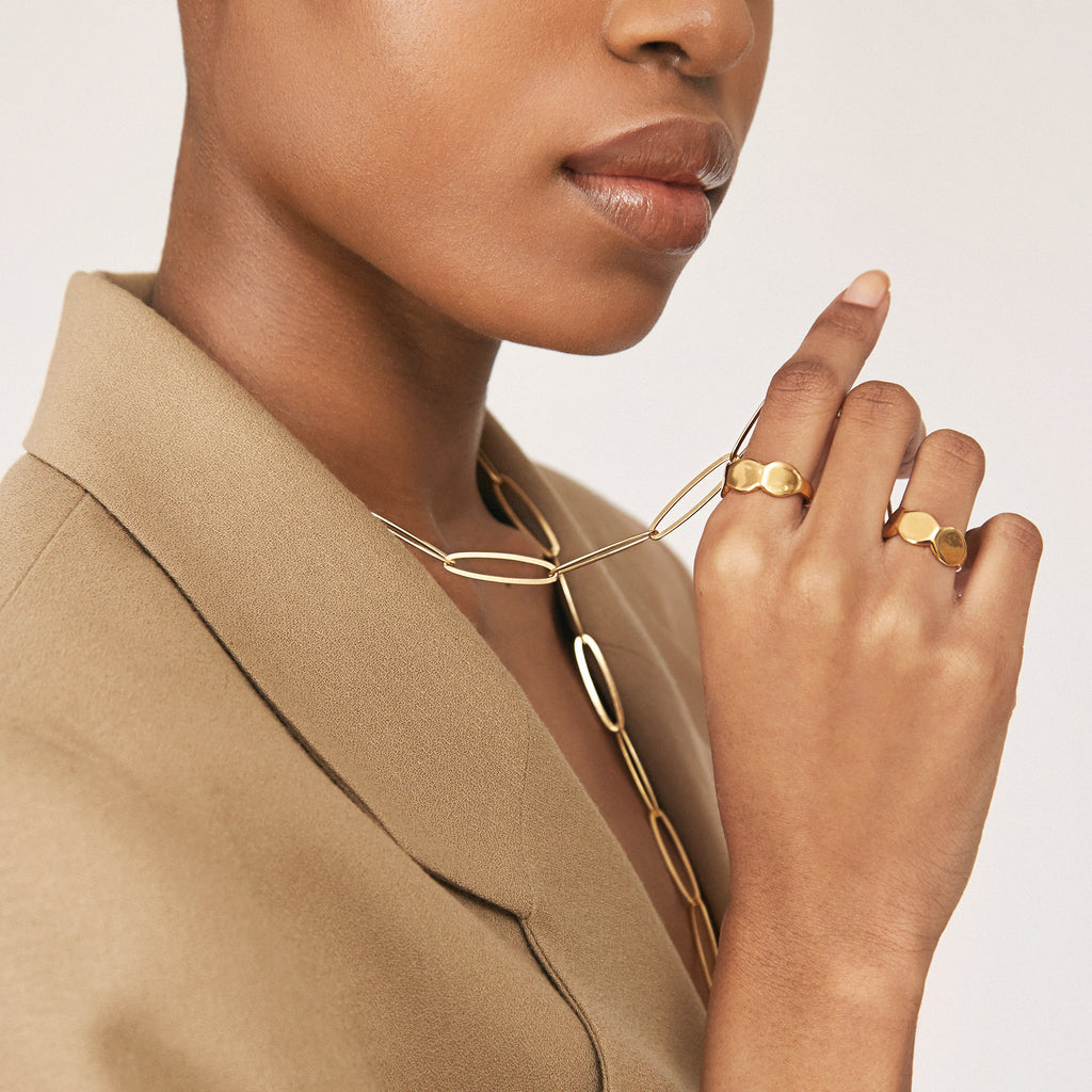 All BIKO pieces are plated in 14k gold or rhodium, over brass. They do not tarnish or cause discolouration on the skin. All earring posts are surgical stainless steel, and hypo-allergenic. Wear your BIKO jewels often; love them always.