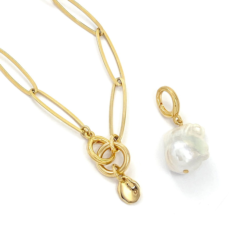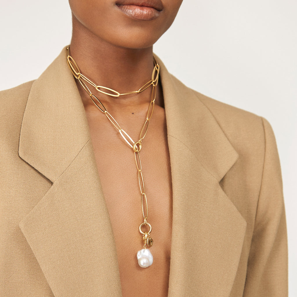 Style Tips: Clasp the chain to itself into a long V-shape, or wrap twice around the neck for a shorter, layered silhouette. Clip the pearl anywhere along the chain, or onto its round loop to create a gorgeous charm cluster. To kick it up a notch, try as a belt with the clipped pearl end flowing downwards.