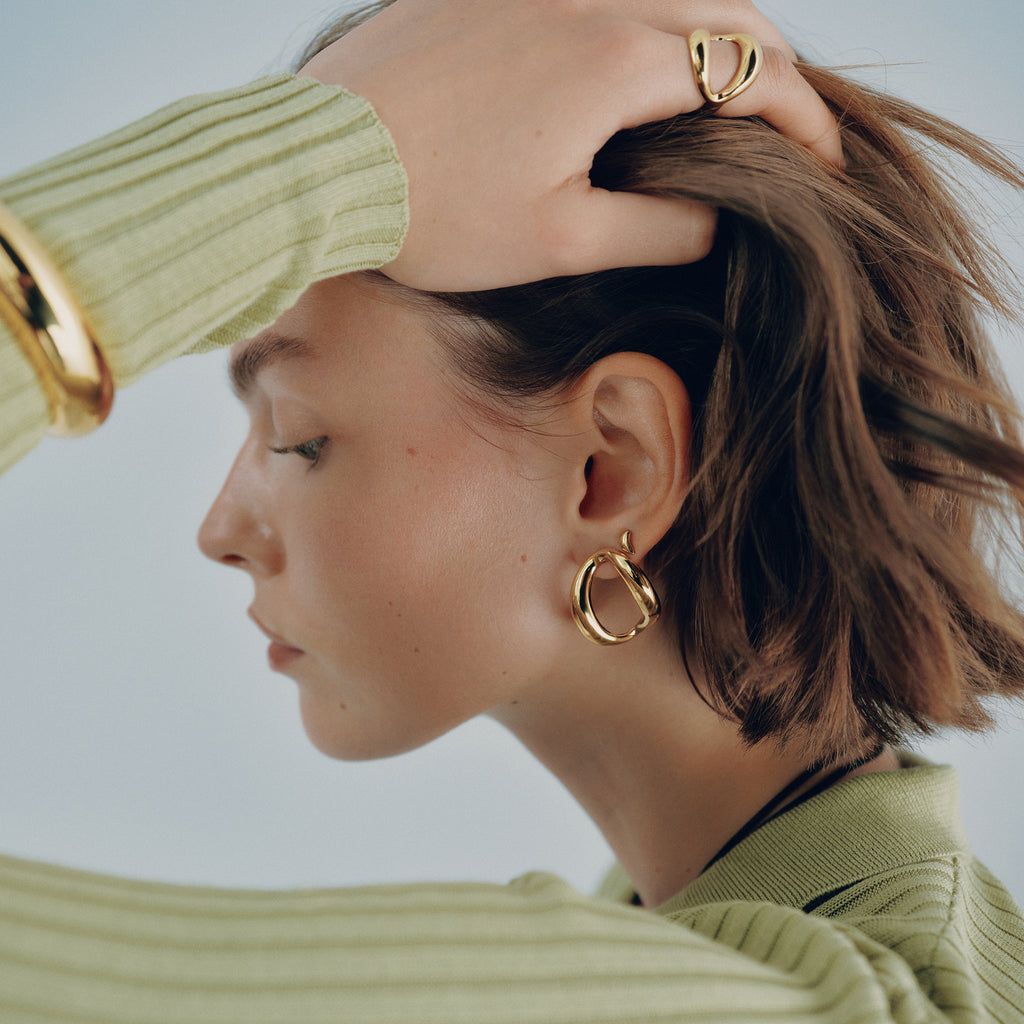All BIKO pieces are plated in 14k gold or rhodium, over brass. They do not tarnish or cause discolouration on the skin. All earring posts are surgical stainless steel, and hypo-allergenic. Wear your BIKO jewels often; love them always.