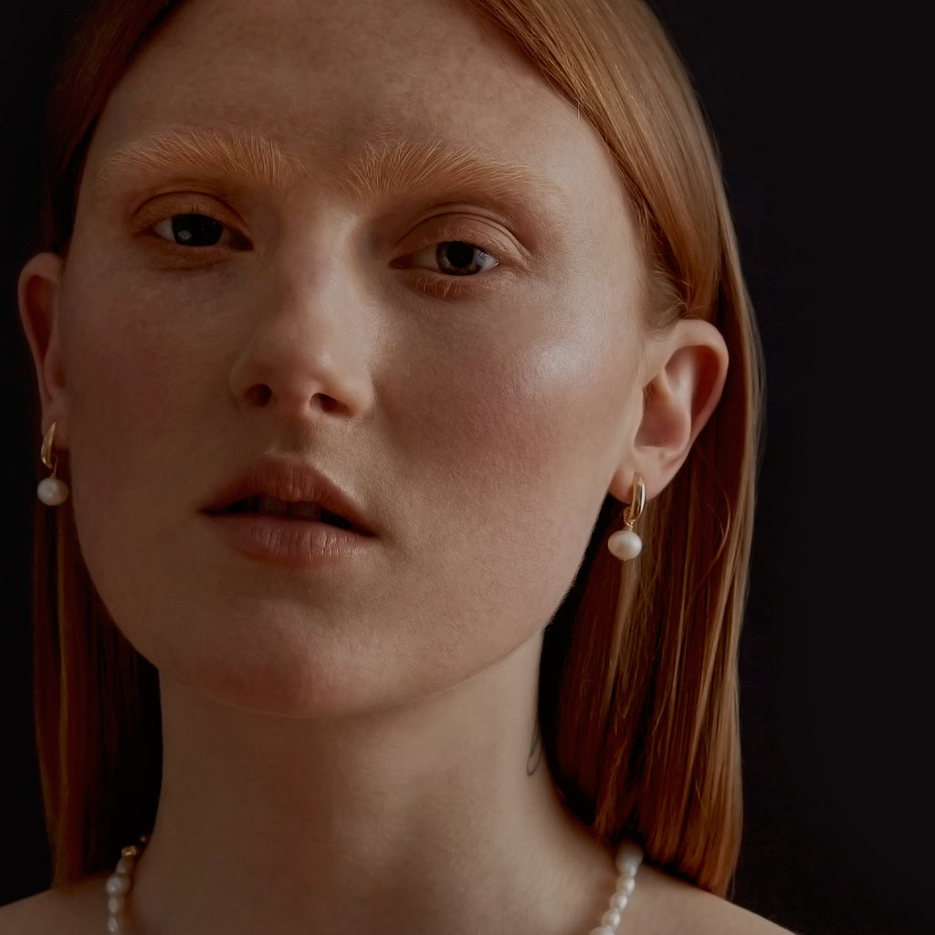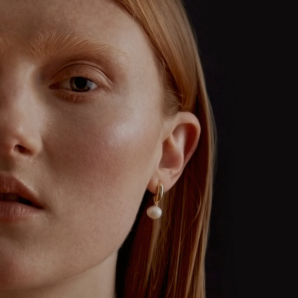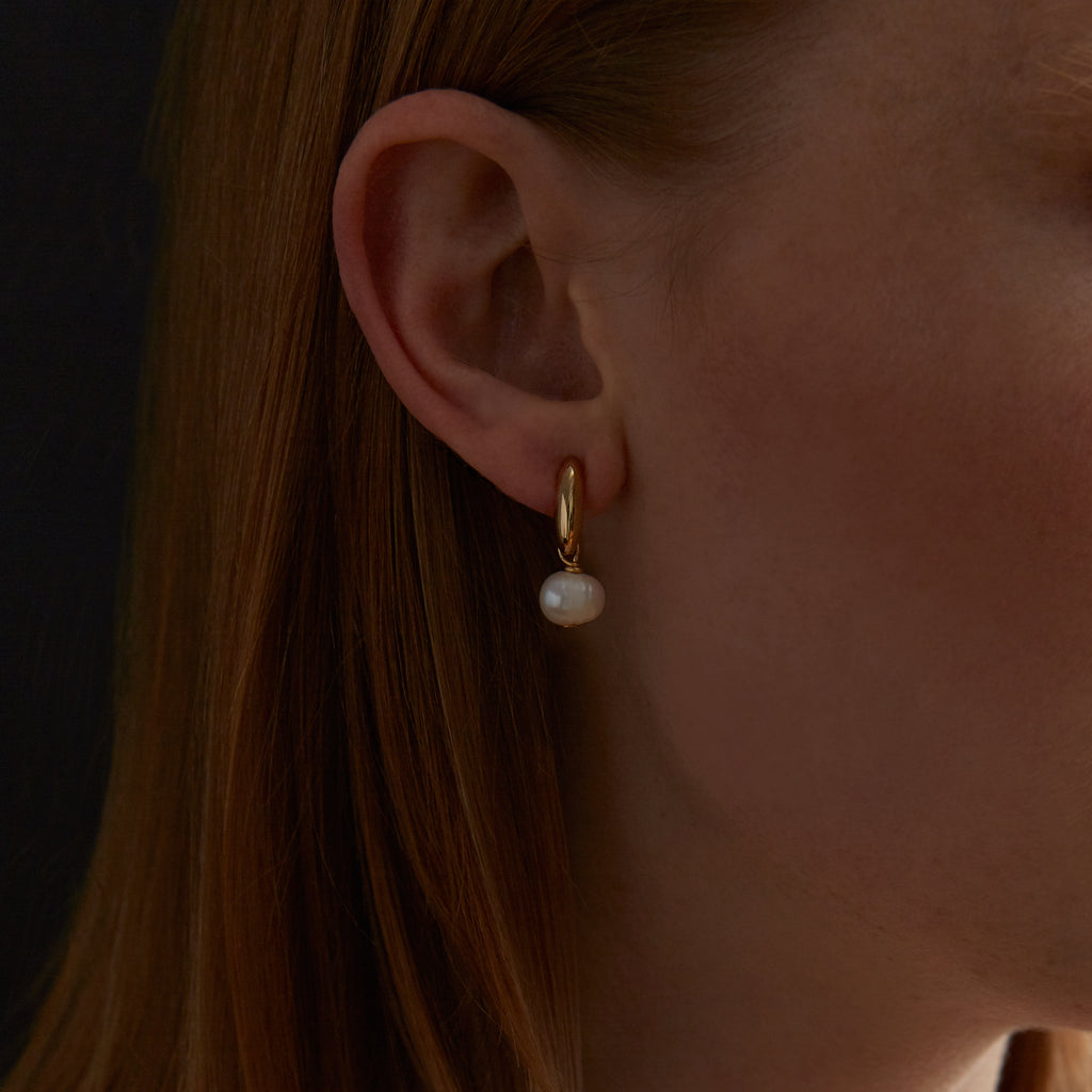 These are so beautifully made. I can tell the pearl quality is tops, and the way the earring bends underneath the ear is a nice touch. Also a fan of Biko's custom earring backings. The details are spot on.