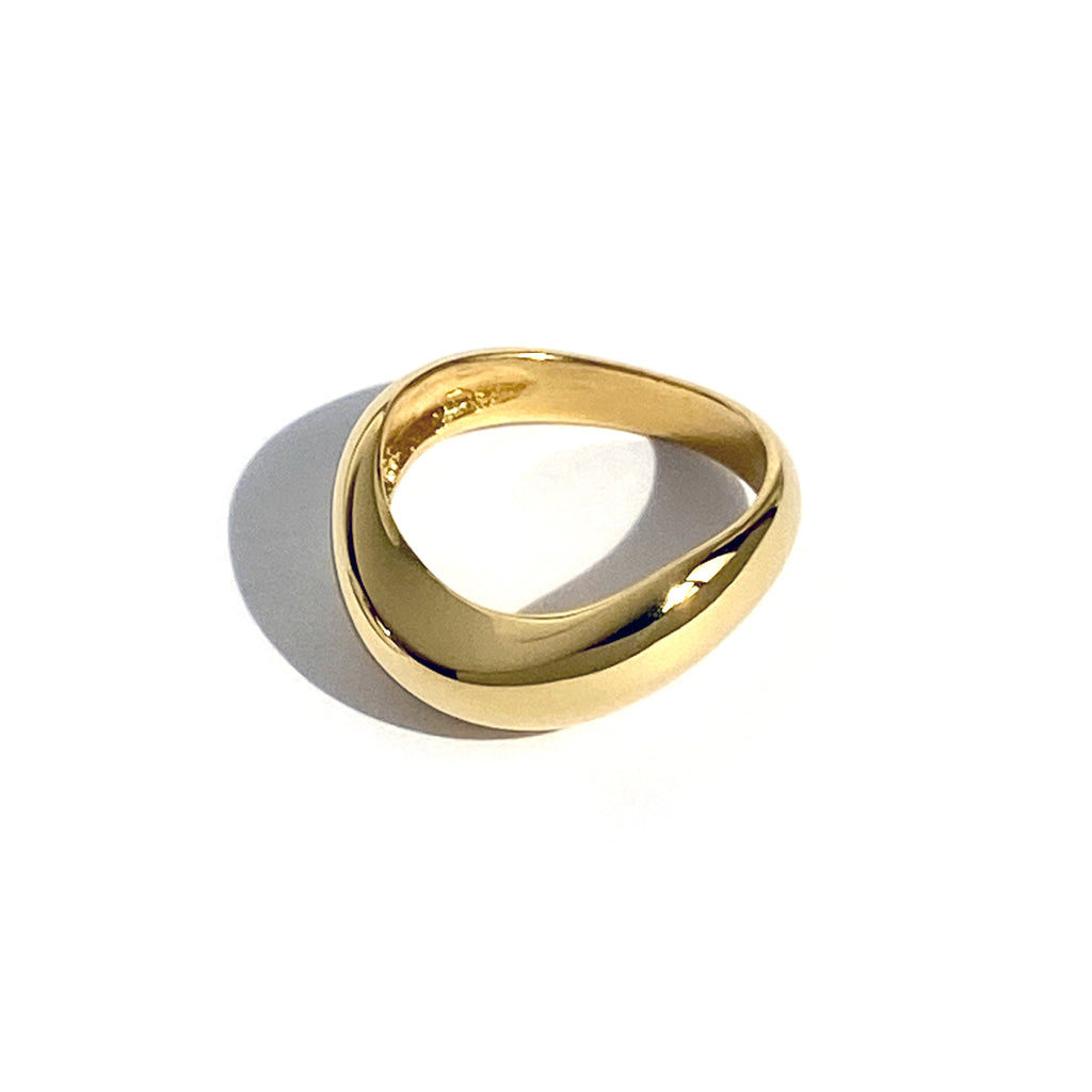 An abstract wave of luminous metal contours your finger with sleek precision. With its refined silhouette, this ring is the epitome of comfort and everyday style—wear it solo or stack it up. Also available in a thinner version: Small & thicker version: Large.
