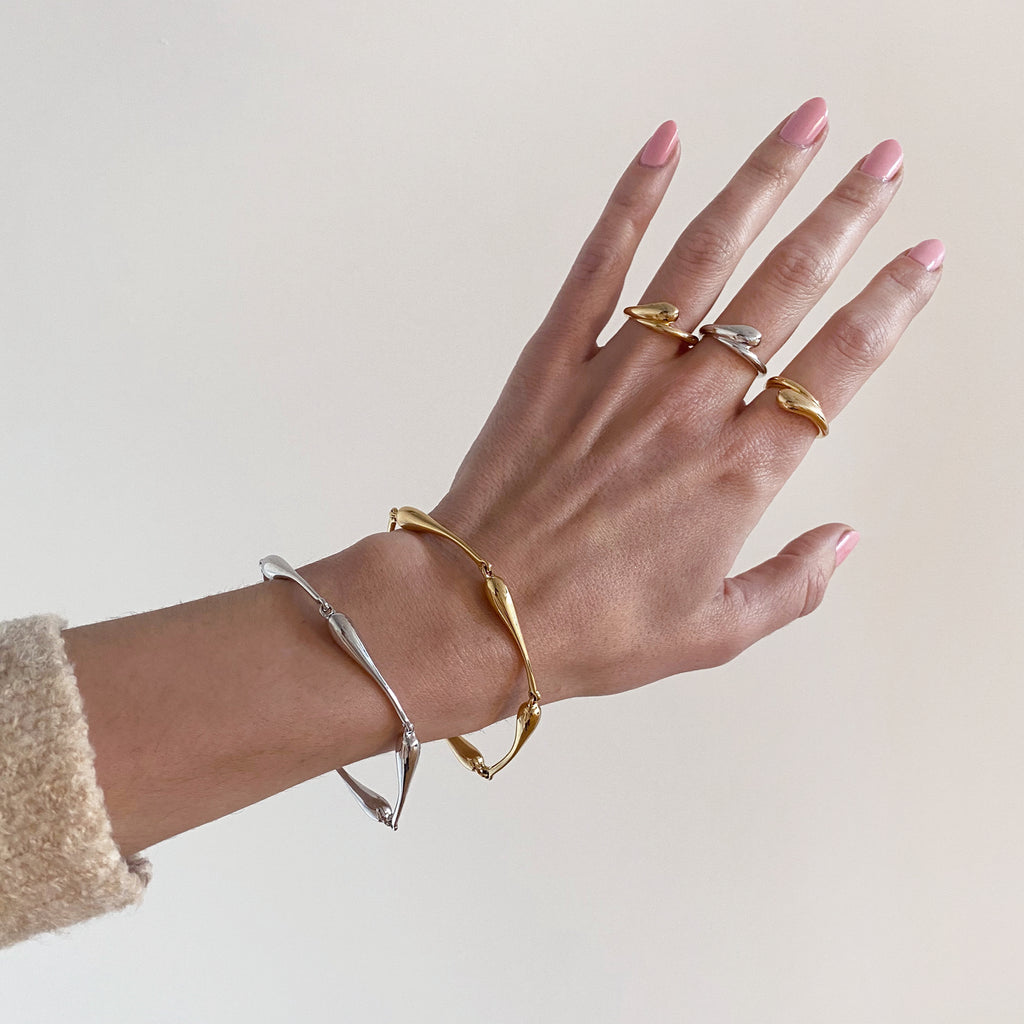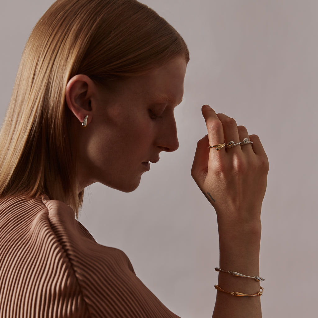 All BIKO pieces are plated in 14k gold or rhodium, over brass. They do not tarnish or cause discolouration on the skin. All earring posts are surgical stainless steel, and hypo-allergenic. Wear your BIKO jewels often; love them always.