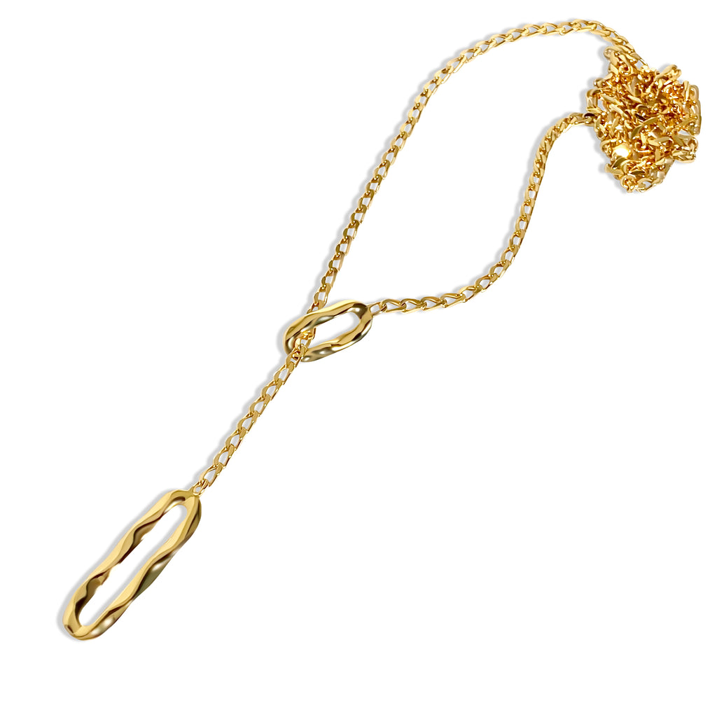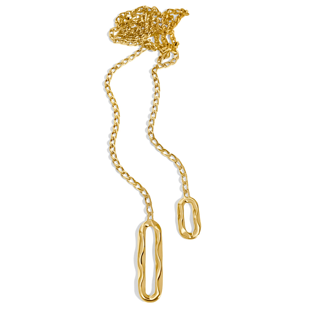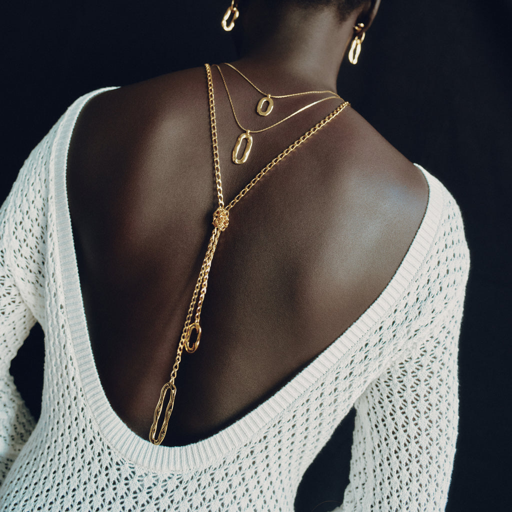 We love versatility. A duo of handcrafted, sculptural O-link pendants melt into a sleek lariat silhouette. The ultimate multitasker, Juno offers endless ways to style. Wear it long, short, knotted, or wrapped choker-style—the choice is yours. Finished with a sleek, vintage-sourced curb chain that catches the light with every move. Click here to see us style this piece 5+ different ways. Also available in silver.