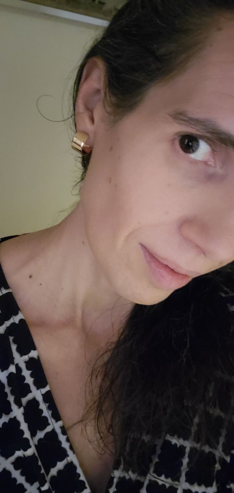 These earring were magical! I don't know if it's the gold plating (although the others I have claimed the same thing) but I wore them all day and didn't feel the urge to take them off at all! I've been wearing them out to everything, office when I have to go in, patio outings, casual dressy or more dressy. I just LOVE them. and they are SOOOO ridiculously light! I'm definitely getting the bigger size soon although this size is perfect for everything. The personalized package they came in, and the cute little soft pouch that comes with them is so perfect for me to carry around for travel (when that starts again).