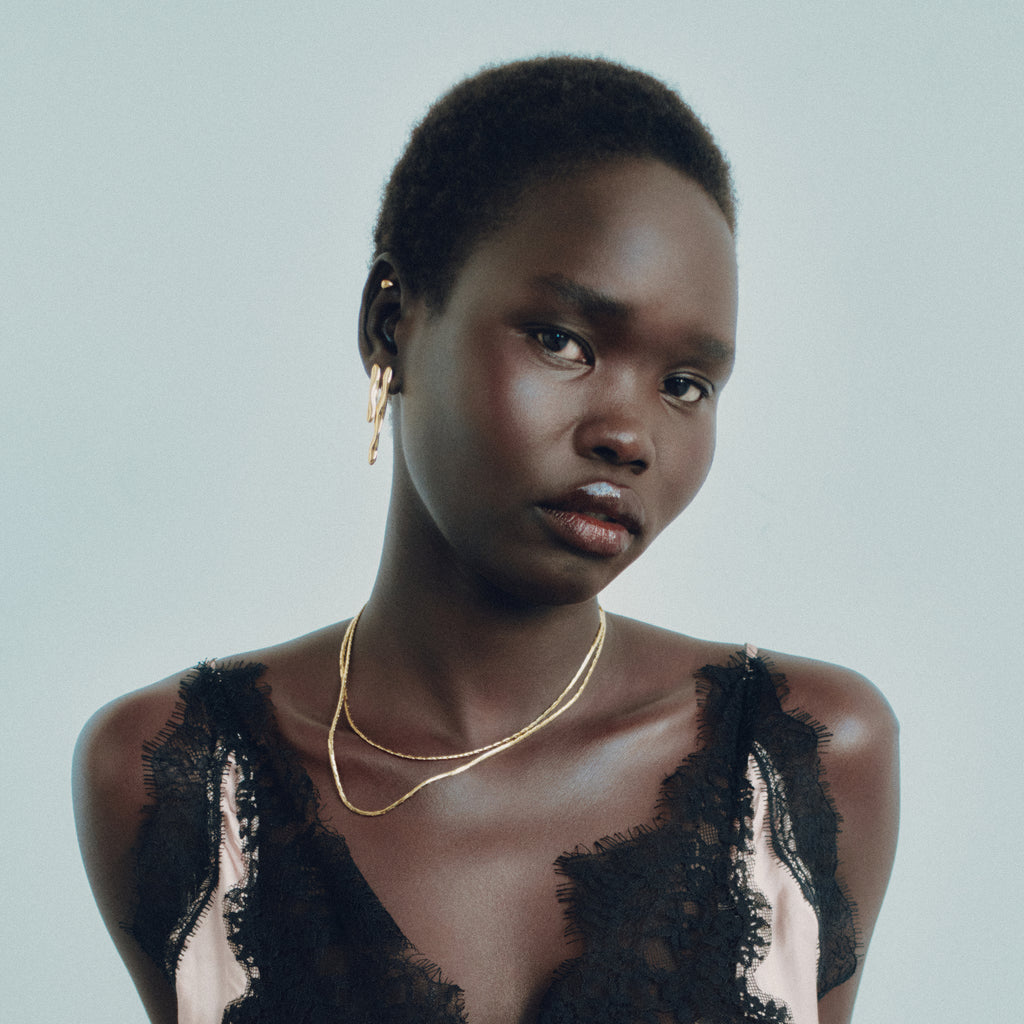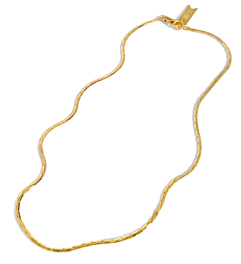 Meet the sleekest stream of high-shine perfection. This minimal serpentine chain was sourced from vintage deadstock, uncovered at a beloved supplier who's sadly no longer in operation. An everyday staple to layer or let shine solo. Available in 5 lengths.