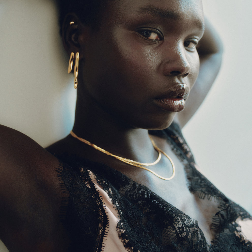 All BIKO pieces are plated in 14k gold or rhodium, over brass. They do not tarnish or cause discolouration on the skin. All earring posts are surgical stainless steel, and hypo-allergenic. Wear your BIKO jewels often; love them always.