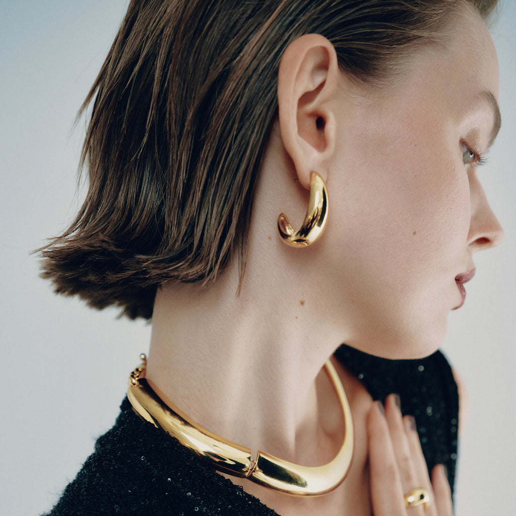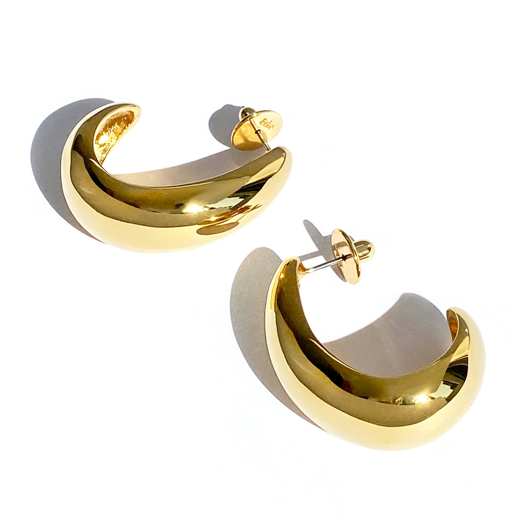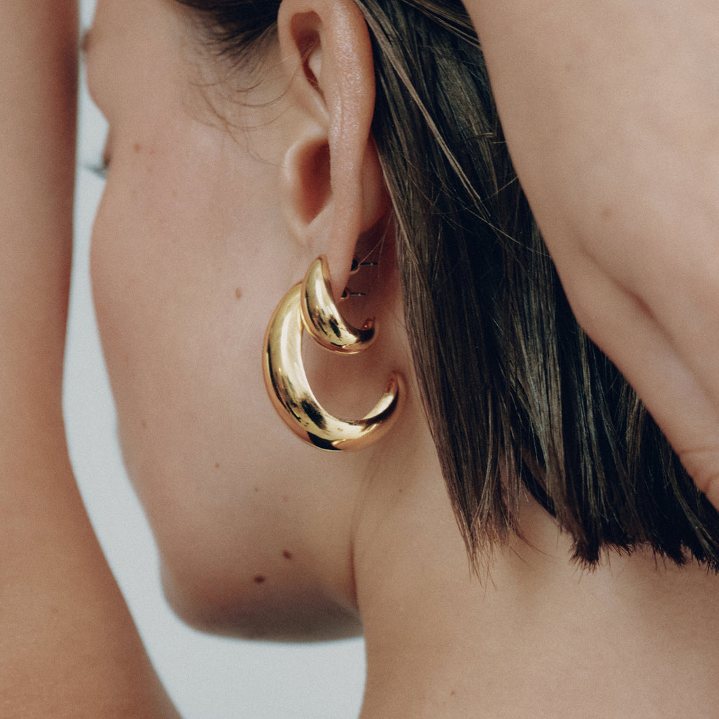 ...Meanwhile, we've stepped it up a notch over here. Say hello to your elevated, everyday statement hoops. Warning: these glossy, high-impact beauties are sure to turn heads. Available in 3 sizes.