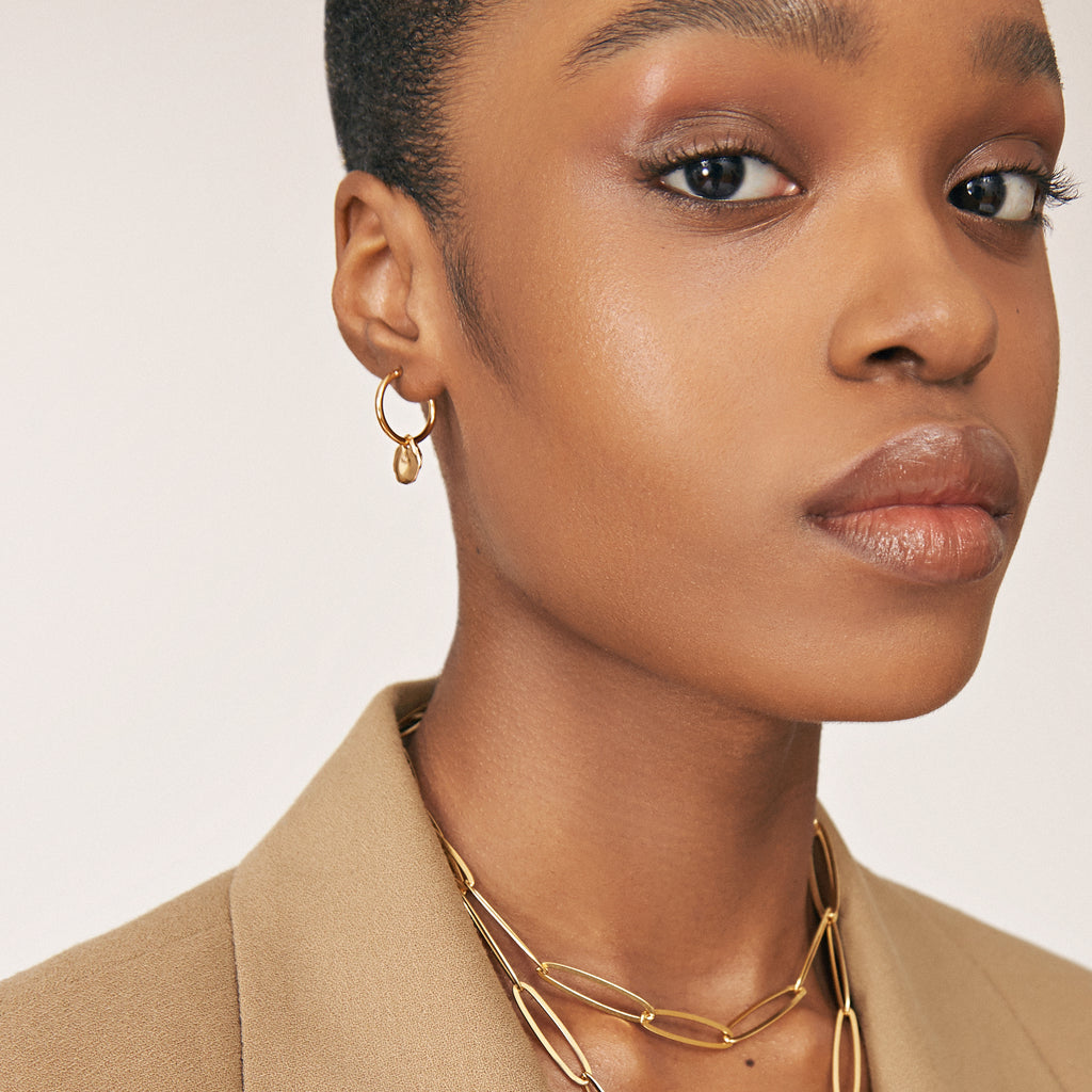We love versatility. These 2-in-1 hoops are dimensional, super sleek, and downright cool. Featuring a hand-cast charm, polished to perfection, suspended from the perfect mid-size hoop. Slide the charm off the top for a minimal solo hoop option as well.