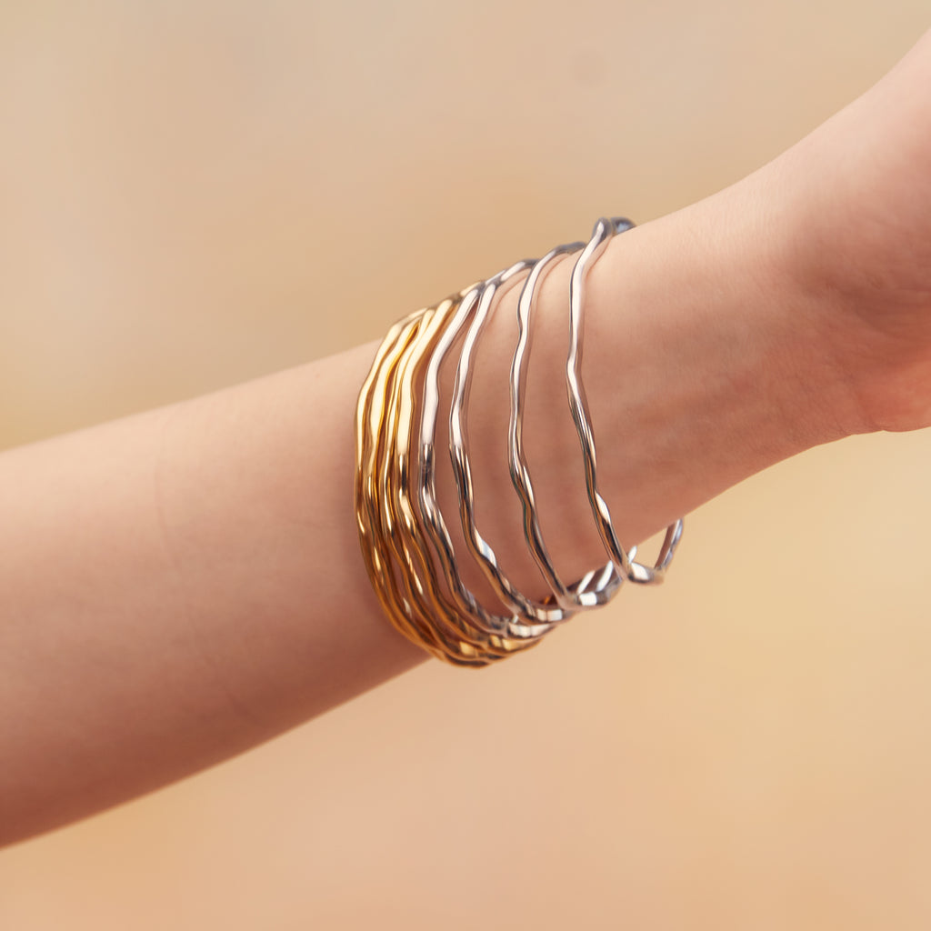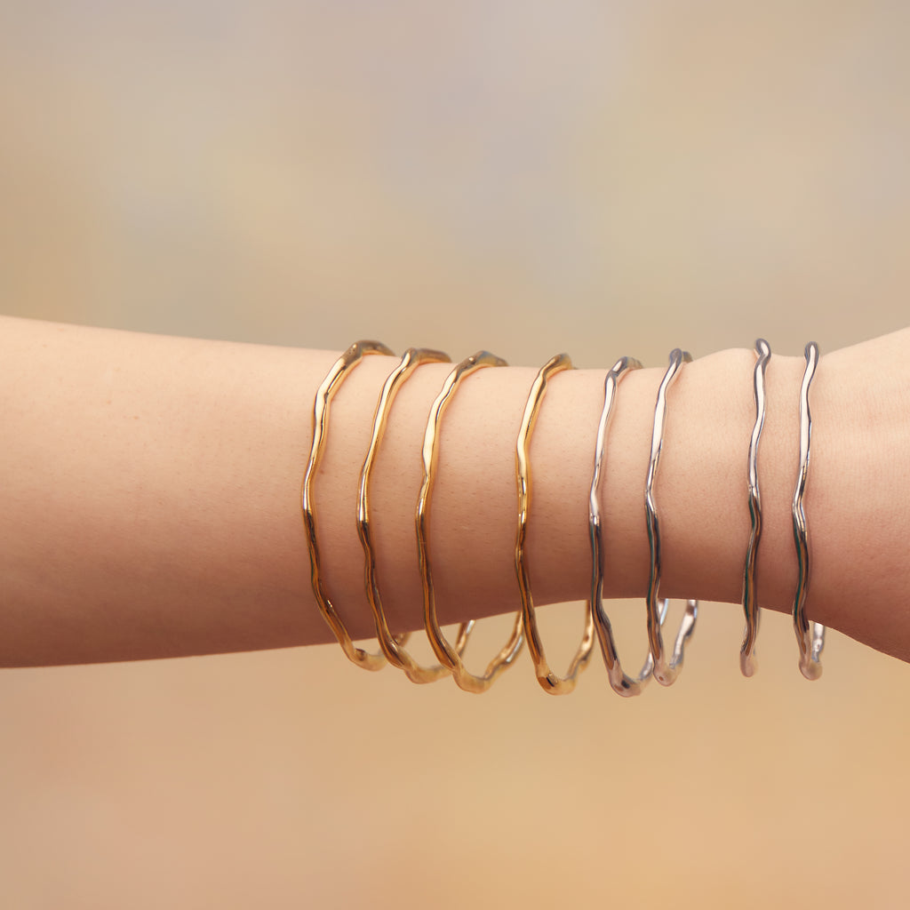 Rio - The sun beats down; the air feels vibrant but still. Ocean salt on your skin, a sweetness in the air. The heat energizes you, makes you feel alive. And like the rhythm of the music, you're unstoppable. THIS is the energy within the Rio Bangle, inspiring your most spirited self forward. With an organic molten wave throughout (handcrafted from a custom-cast baroque pearl), it's the perfect piece to stack in multiples, or enjoy solo as well.
