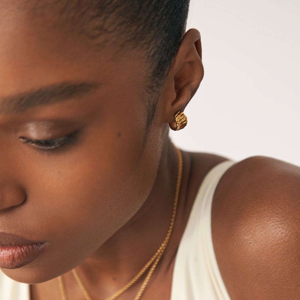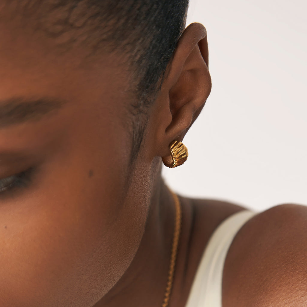 Perfectly curvaceous and lightweight, hugging your earlobe just right. These easy daily minis are meticulously crafted from a deconstructed shell, hand-manipulated and polished to a mirror finish. You'll quickly wonder where they've been all your life.
