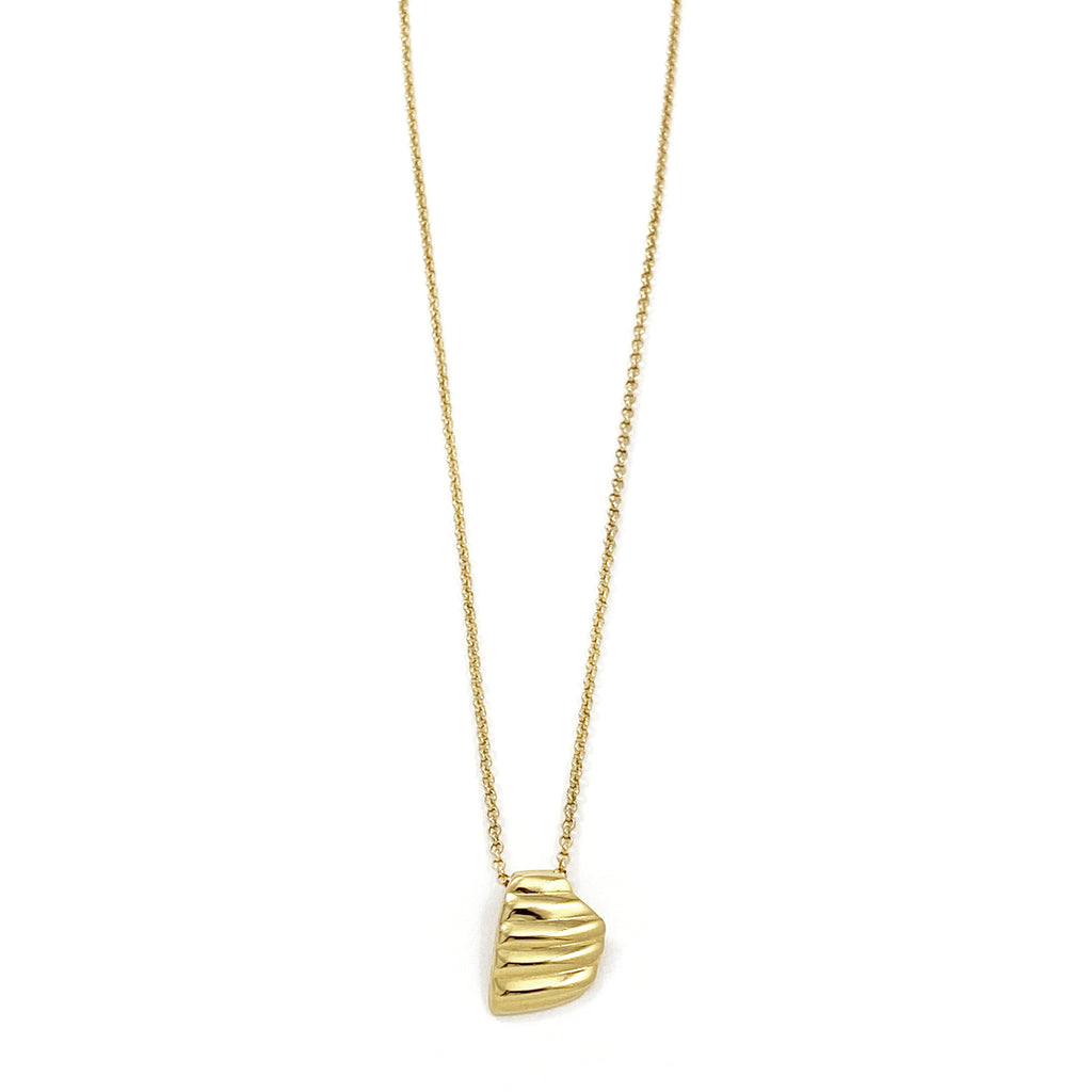 An easy everyday layering classic, this organic, modern pendant was thoughtfully handcrafted from a deconstructed shell, hand-cast and polished to a mirror finish. It's ripples playfully mimic the rays of the sun, bringing brightness and warmth to any outfit.