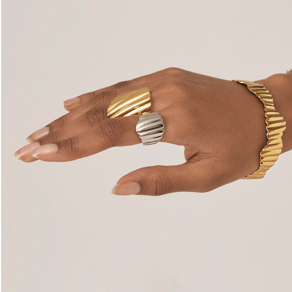 Radiance redefined. An energetic, artful expression of the sun's luminosity, the sleek Soleil Ring is meticulously handcrafted from deconstructed shell findings, delivering light-bending shine for maximum impact. Its organic ripples perfectly curve along the finger for a comfortable, modern silhouette. Cue your new timeless statement ring. Available in Small, Medium & Large.